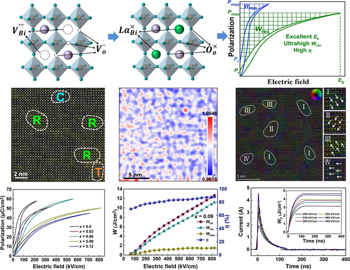 图2 运用流延工艺制备的无铅储能陶瓷的原子尺度结构及储能性能